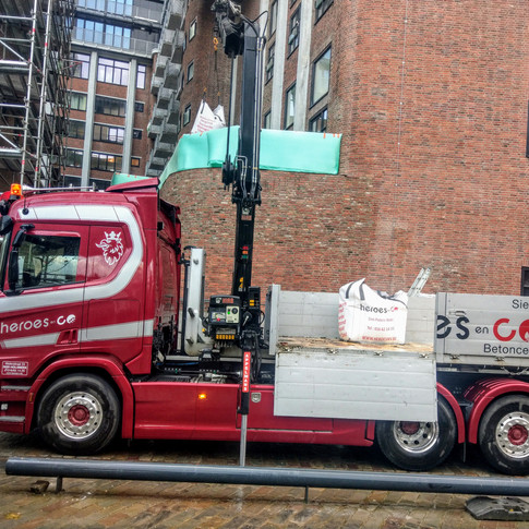 Wist je dat we bij Heroes nu ook met onze kraanwagen stabilisé of chape in bigbag op hoogte kunnen leveren?